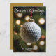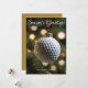 Elegant Christmas card featuring a close-up photo of a golf ball ornament hanging on the branches of a Christmas tree. Card texts fully personalizable. Need help? Contact us for assistance personalising or with customisations. Happy holidays!