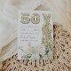 Gold Gown White Flowers Elegant 50th Birthday Invitation
