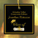 Graduation ornament with custom front and back text. Nice unisex design easy to personalise with your own text. Features image of a gold grad cap and matching tied diploma in a framed square. Red, black and other cap colours also available in this same design.