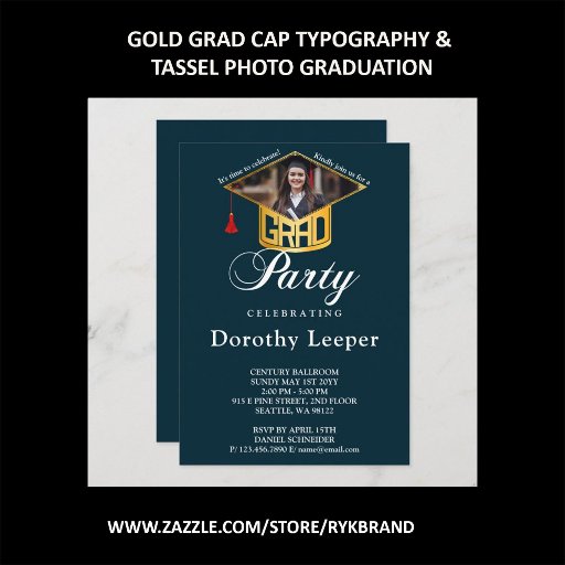Gold Grad Cap & Photo Graduation Party Invitation