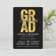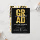 GRAD In Faux Gold Foil Bold Typography On Black Background, Class of 2024/2025, Chic and Stylish Graduation Party Invitation Card.