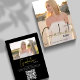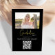 This design features modern typography calligraphy script, a gold golden and black two 2 photo layout, with an elegant graduate text overlay, a stylish trendy elegant high school, a minimalist minimal simple class, a graduation grad party invites, graduate typography, and calligraphy, for high school or college announcement, a stylish graduation party invitation, a clean basic simple style design, with a QR code for the online website URL address