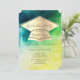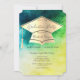 Gold Graduation Cap,Watercolor Green Graduation Invitation