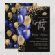 Gold Graduation Party Navy Blue balloons Invitation