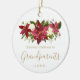 Elegant photo ornament featuring watercolor poinsettias in red along with "Our First Christmas as Grandparents" and the year in gold. The backside has your favorite picture. Template example shown is for grandparents, but may be changed to grandma or grandpa.