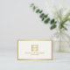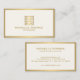 A faux metallic gold greek key emblem is combined with your name or business name for a chic logo on this designer business card template. Set on an ivory background for an elegant aesthetic. © 1201AM CREATIVE