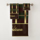 Gold, Green And Burgundy Chequered Monogrammed Bath Towel Set