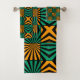 Gold Green Black Square Geometric Pattern Bath Towel Set