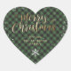 Gold Green Buffalo Plaid Snowflake Merry Christmas Heart Sticker