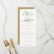Compliment your classic wedding event with this gold green eucalyptus wedding menu. The design features elegant watercolor green and gold eucalyptus leaves.