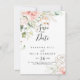 This gold green foliage floral wedding save the date is perfect for a modern wedding. The design features hand-drawn gold and green botanical foliage with pink, blush and white flowers, inspiring natural beauty.
