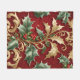 Beautiful Gold Green Leaves Red Christmas Holiday Fleece Blanket