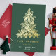 Gold & Green Merry Christmas Pine Tree Happy Foil Holiday Card and your photo on the back.