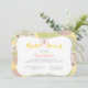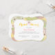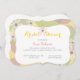 This bracket shaped bridal shower invitation features a gold textured background with a collage of pastel coloured circles and white daisies. A white bracket shape on the lower portion of the of invitation features customisable text for your bridal shower details.