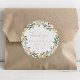 This gold greenery fall thank you wedding favour classic round sticker is perfect for a modern wedding. The design features charming artistic green and gold foliage.