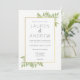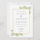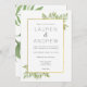 Beautiful wedding invitation with floral green leaves and a gold border