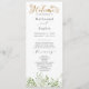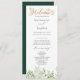 This Gold Greenery Watercolor wedding program is ideal for a boho-inspired celebration. Featuring rich, moody green watercolor leaves and eucalyptus, the design blends rustic elegance with a modern woodland vibe. Customise with the couple’s names, wedding date, venue, a heartfelt thank-you note, ceremony details, bridal party list, and an optional "In Loving Memory" tribute.