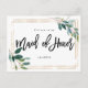 A stunning boho faux gold and greenery design will you be my maid of honour postcard. Easy to change the text details to your own. Lots of matching stationery in this pretty collection. Please visit my shop to see the full range including maid of honour, flower girl and bridesmaid.