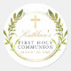 Gold Greenery Wreath First Holy Communion Classic Round Sticker