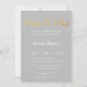 Minimalistic bridal shower invitation themed with going from Miss to Mrs. Grey background with gold glitter calligraphy