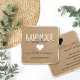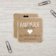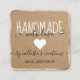 This simple, rustic, and cute business card is perfect for the home crafter, Etsy shop owner, or art fair creative. It features handwritten script font in black and white that says, "Handmade with love by (store name)," on top of a minimal and chic faux printed gold foil border and brown kraft paper background. It's modern, elegant, sweet, and unique; the perfect design for your customers.