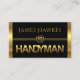 A black cover features a pair of faux gold layers that encapsulate the sides of the card. At the center is a gold home-handyman tools demarcation line with a gold "HANDYMAN" signage underneath. At the top of the card is your prestigious name.