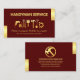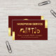 A dark red cover is encapsulated by gold tabs at the upper and lower corners of the card. It features a gold handyman tools motif near the centre.