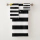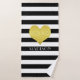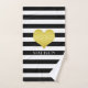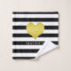 Gold Heart Black White Striped Pattern Name Bath Towel Set