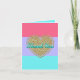 Pretty modern thank you note card done in a coral, lavender, and aqua bold colour block stripe, with graphics of a golden glitter looking heart, in the middle. Aqua graphic text, on the heart, reads Thank You. Personalise the text inside to suit your needs. Lovely way to send your thanks for any occasion.