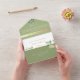 This all-in-one wedding invitation includes the invitation, RSVP section, and photo layout in a single folded card for a streamlined and stylish presentation. While it folds neatly, it requires a separate envelope for mailing.