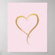 Gold heart on pink background - art print - nursery - girls room - office - decor