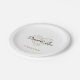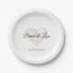 Shown here on a White paper plate in the round style, these plates have a Gold heart created of swirls with the couples names highlighted across it. Last name featured beneath it in bold print. Customise this item and change the sample names to yours. Coordinates with the "Gold Heart Temple Wedding invitations" and Gold Heart Favour box.