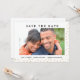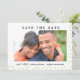 A very sweet and romantic save the date card features your couple's photo surrounded by tiny gold hearts. On the front the hearts are placed in the right and bottom margin. Save the Date is written across the top of the picture. One of line of text along the bottom of your picture allows you to personalise your message. Congrats on your wedding!