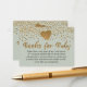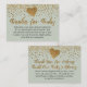Here is a festive take on the popular baby shower book request trend. This design has been embellished with faux gold confetti, and faux gold metallic header text and hearts. Over the editable sage green background, which can be changed to any colour or hue you may wish, I've added graphics that simulates gold glitter confetti and a gold glitter heart. // On the front, a bold header reads "Books for Baby" in a fat, elegant script font, which I've added as a graphic overlay. Another such graphic, placed on the back, reads "Thank You for Helping Build Our Baby's Library". The text has also been embellished in the gold glitter graphic treatment. Beneath that, I've added text boxes for the editable message on each side. They have been filled with place holder type that you may keep or change to your own preferred wording, font and colour. The internet is lush with possible wording and there are many popular poems depicting the purpose of the book request which replaces expensive cards while helping point the new baby towards an appreciation of reading. I decided to write a quirky bit of verse for the front and a friendly, explanatory message for the back. Use my original, or replace these with one of many other options as you see fit. // 88 // Designed by Melody Watson for Paper Muserie.