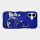 This is a pretty phone case for her that features a beautiful gold faux glitter heart swirl design against a dramatic gradient royal blue background. Her name is in pale gold on the right. *Please note - the image is printed and contains no actual glitter.