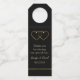 Elegant wedding bottle hanger done in black with graphics of two interlocked gold hearts. Personalise the custom text to suit your wedding needs. Makes great wine bottle favour tags for your wedding guests.