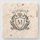 Gold Heraldic Crest Crown Monogram Stone Coaster