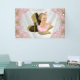 Girl's baby shower banner with adorable light hair blonde baby girl wearing a pink tutu and string of pearls sitting on a pair of gold glitter high heel shoes on a pretty pink and gold satin background. This adorable pink and gold baby shower banner is easily customised for your event by adding text in the font style of your choice. You can move the baby and the shoes as you need. This is a printed design with no real glitter, satin, pearls, etc.