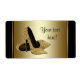 Gold high heel shoe water bottle labels with pretty gold glitter high heel shoes on a beautiful black and gold background. You can add the text of your choice to these elegant high heel shoe water bottle labels. This a printed design with no real glitter, gold, etc. You can also delete the black background and add the colour of your choice. These labels are not waterproof.