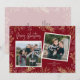This elegant flat Christmas card features two square photos and is accented with lush gold winter botanicals on a dark red background. Add your own personal message on the back.