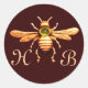 GOLD HONEY BEE / BEEKEEPER BEEKEEPING MONOGRAM CLASSIC ROUND STICKER