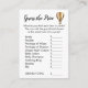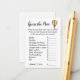Using a modern script font, the header reads "Guess the Price". Below that are the instructions for the game, followed by a list of baby products matched with a line for prices to be hand-written. Body text is rendered in a casual, modern sans-serif font. All text was placed over a simple white background you can change to any colour you wish. At both the top of the front and bottom of the back is a single graphic image depicting a smooth faux gold hot air balloon, adding a festive vibe and suitable for a gender-neutral shower. // Designed by Melody Watson for Paper Muserie.