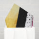 Modern colour block geometric stripes pattern in fuchsia hot pink, gold, and dark grey and white watercolor polka dots pattern.