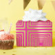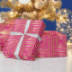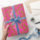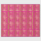 Decorative and elegant hot pink and gold gift wrapping paper featuring shiny gold squares intricately linked to produce a captivating 3D illusion.