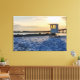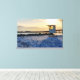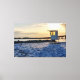 Canvas print featuring golden light during gold hour sunset casts a warm, ethereal glow over a lifeguard station at Snorkel Beach in Destin, Florida, United States. The station stands against the gold yellow light of the sunset, blending deep oranges as the sun glares on the calm waters.