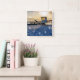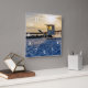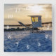 Wall clock featuring golden light during gold hour sunset casts a warm, ethereal glow over a lifeguard station at Snorkel Beach in Destin, Florida, United States. The station stands against the gold yellow light of the sunset, blending deep oranges as the sun glares on the calm waters.