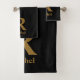 Gold Initial/First/Family Name On Black Bath Towel Set