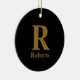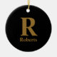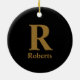 Gold Initial/First/Family Name On Black Ceramic Tree Decoration