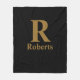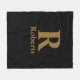 Gold Initial/First/Family Name On Black Fleece Blanket