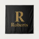 Gold Initial/First/Family Name On Black Tapestry